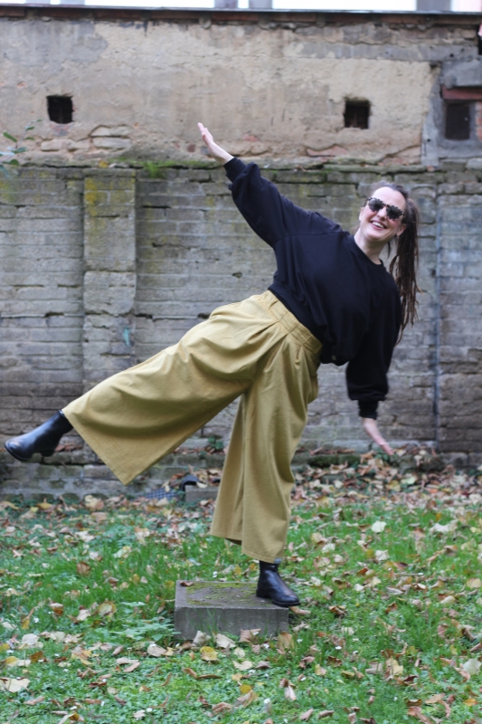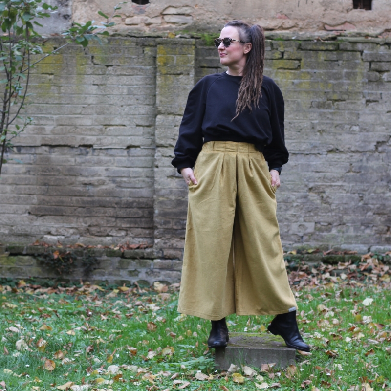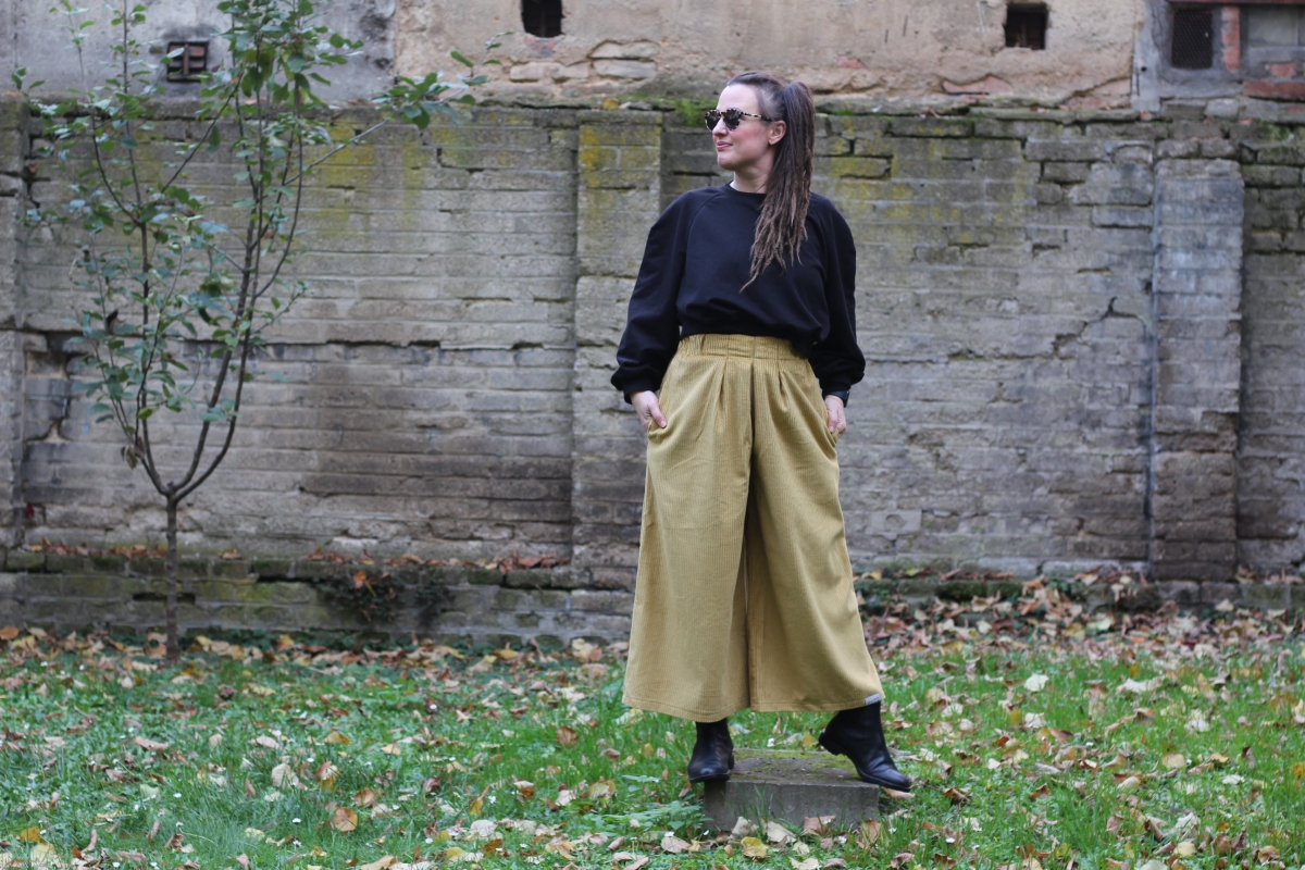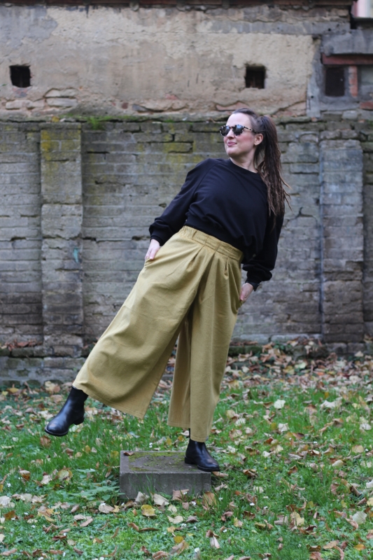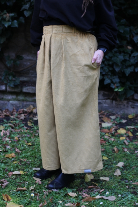 Kalhoty jsou ušité z bavlněného manšestru, mají široké nohavice a jsou velmi pohodlné, dokonce tak pohodlné, že už je nebudete chtít sundat a nebudete chtít nosit jiné.