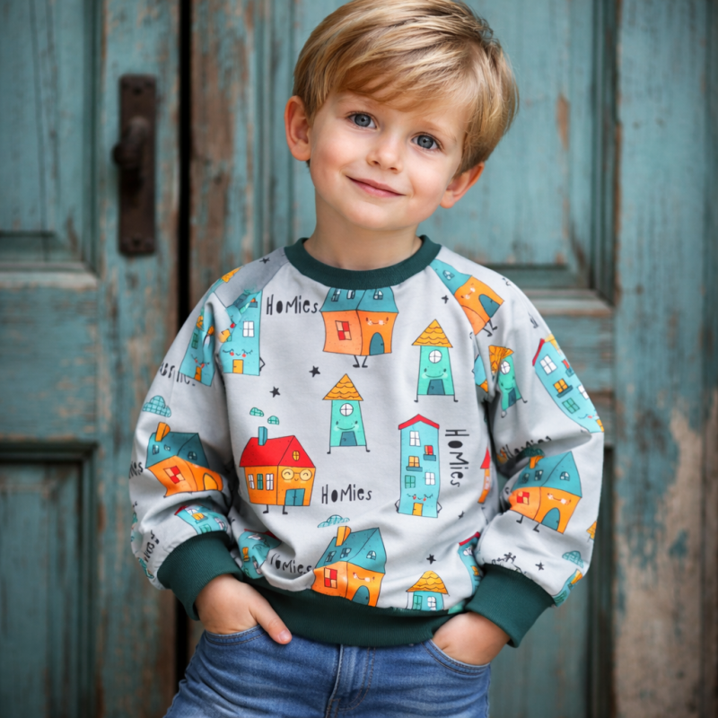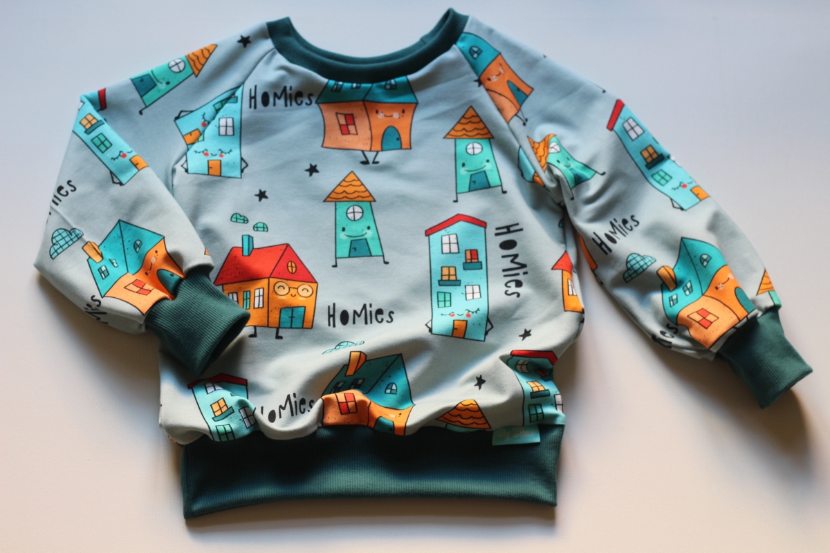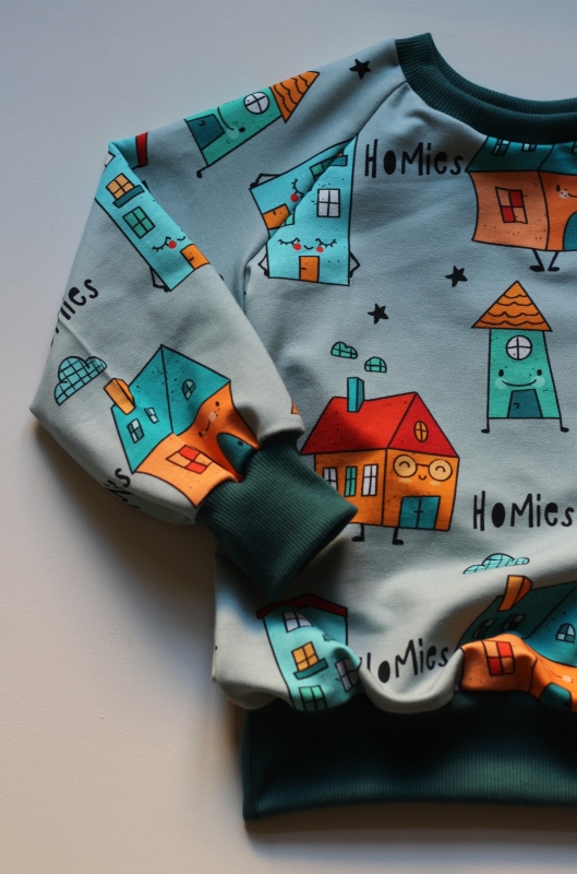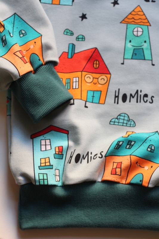 Mikina je ušitá z designové bavlněné tenké teplákoviny s bio bavlněnými rukávy. S certifikací pro děti do 3 let. Je heboučká a neskutečně měkoučká a příjemná na dotek.