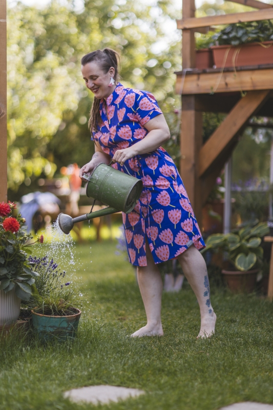 Šatičky střihu jsou ušité z designového bavlněné košiloviny, kterou máme od evropského výrobce. Jsou bez rukávu a přední díl je kratší než zadní.