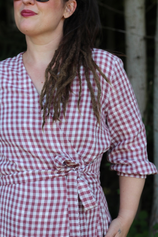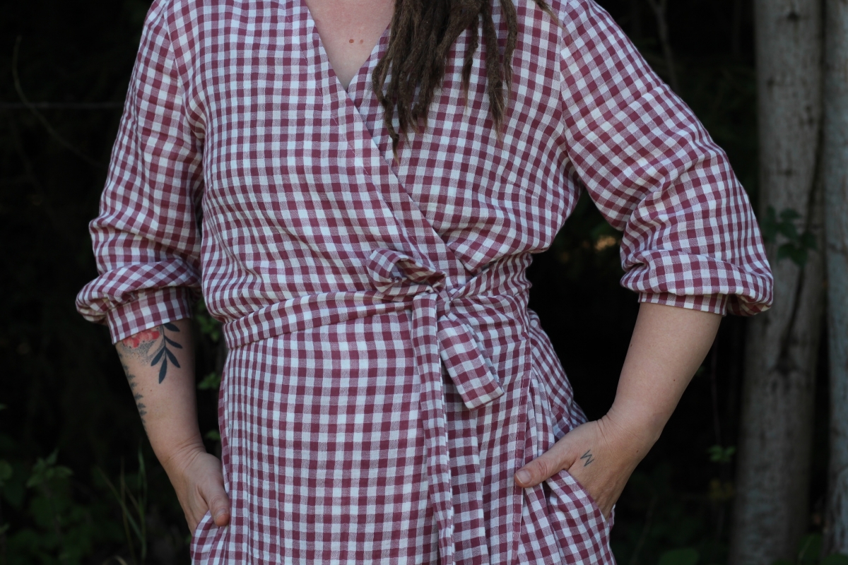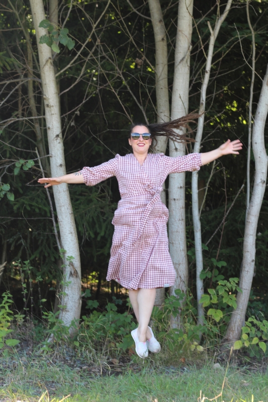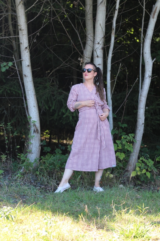 Šaty jsou ušité z bavlněného mušelínu, neboli dvoiité gázoviny. Mají propracovaný střih, jsou rozevírací, což jistě ocení i těhotné a kojící maminky. Uvnitř mají pojistku v podobě knoflíčku, takže šaty krásně drží tvar. Kolem pasu jsou na zavazování, díky němuž se šaty krásně přizpůsobí postavě a působí vypasovaným dojmem. Nezbytnou součástí všech našich šatů a tedy i šatů Thea jsou kapsy.