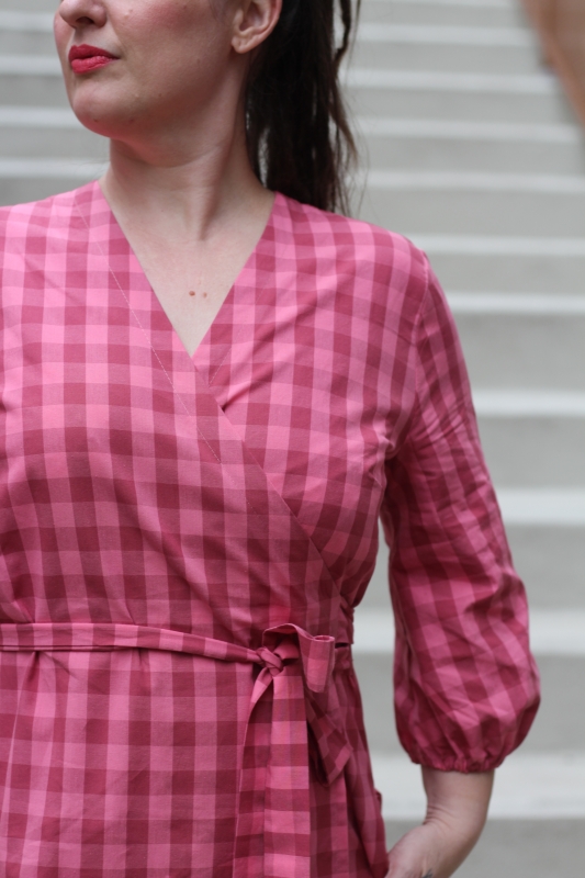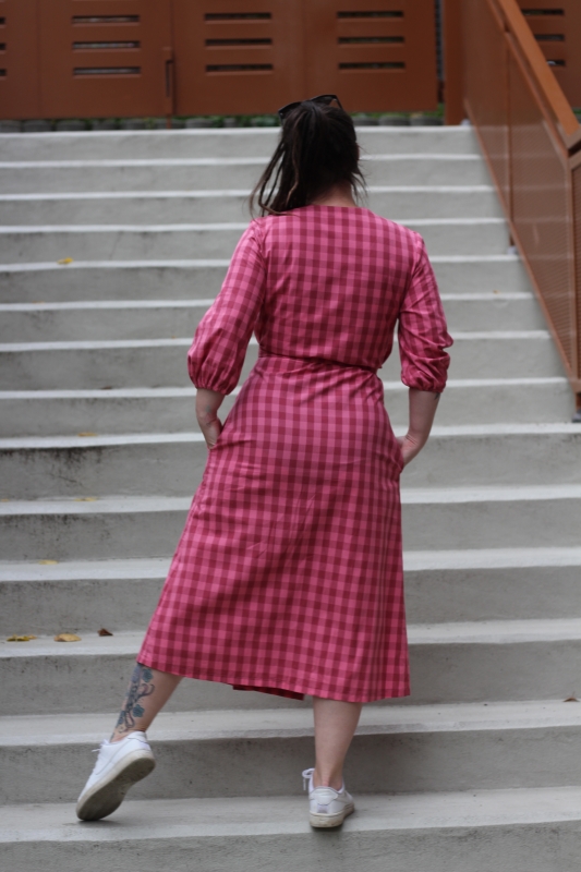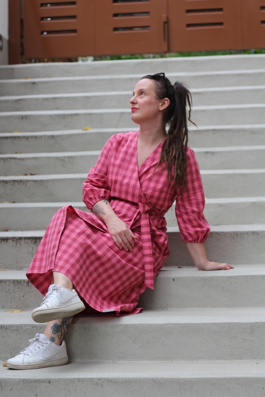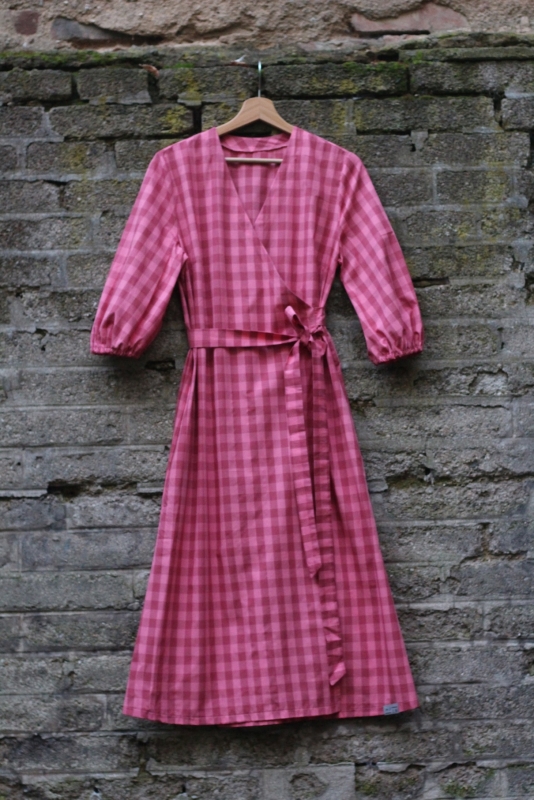 Šaty jsou ušité z bavlněného plátna. Mají propracovaný střih, jsou rozevírací, což jistě ocení i těhotné a kojící maminky. Uvnitř mají pojistku v podobě knoflíčku, takže šaty krásně drží tvar. Kolem pasu jsou na zavazování, díky němuž se šaty krásně přizpůsobí postavě a působí vypasovaným dojmem. Nezbytnou součástí všech našich šatů a tedy i šatů Thea jsou kapsy.