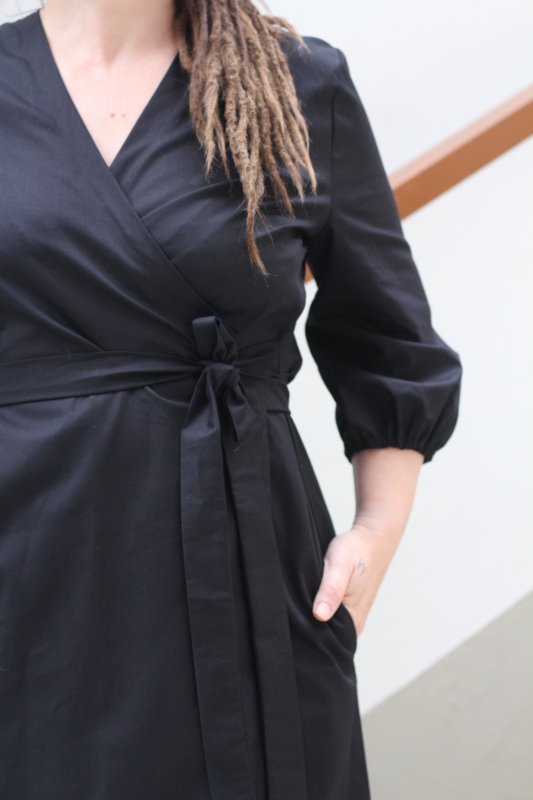Šaty jsou ušité z bio bavlněného premium plátýnka. Mají propracovaný střih, jsou rozevírací, což jistě ocení i těhotné a kojící maminky. Uvnitř mají pojistku v podobě knoflíčku, takže šaty krásně drží tvar. Kolem pasu jsou na zavazování, díky němuž se šaty krásně přizpůsobí postavě a působí vypasovaným dojmem. Nezbytnou součástí všech našich šatů a tedy i šatů Thea jsou kapsy.