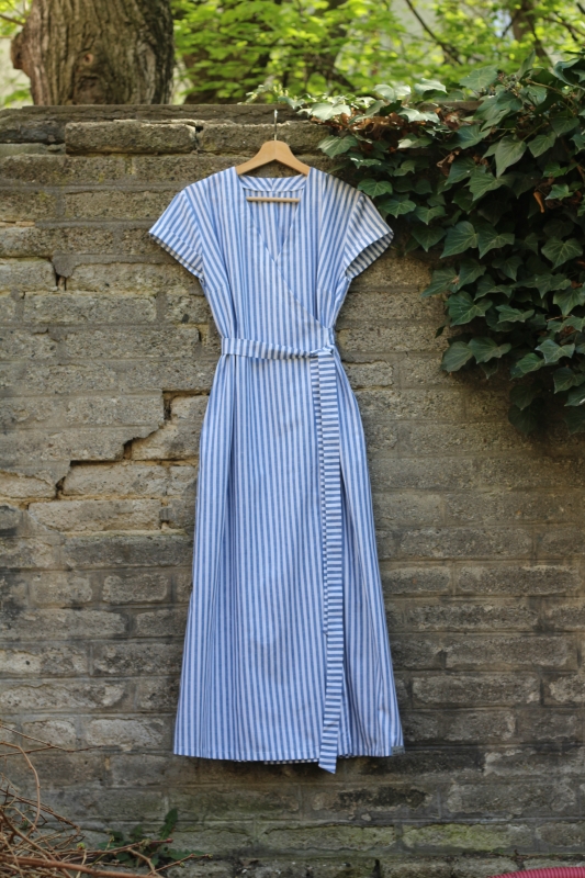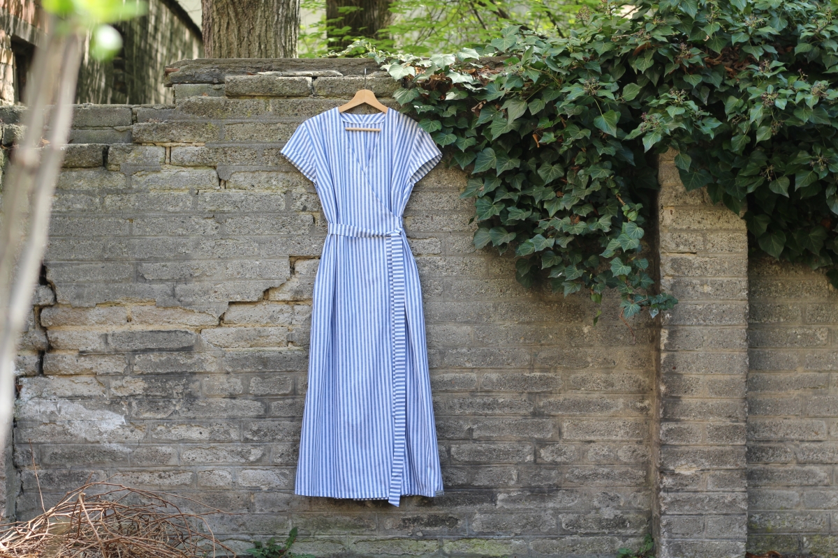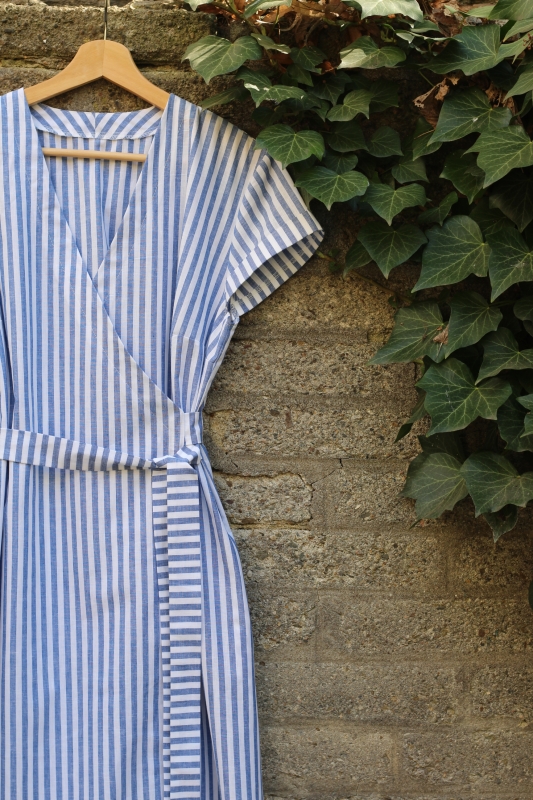 Prodloužená délka (130 cm) dodává siluetě eleganci a vzdušnost. Zavinovací střih se zavazováním v pase se krásně přizpůsobí postavě a zvýrazní ženské křivky bez nepohodlí.
