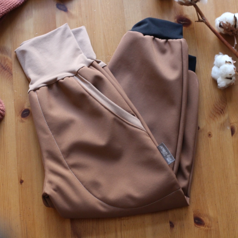 Tepláčky jsou ušité z funkčního nepromokavého materiálu, jehož vnitřní stranu tvoří měkoučkým fleese... Díky nápletům v pase i u nohavic rostou s dětmi:) Mají snížený sed, aby se pohodlně vešla i plínka. Vysoký pas je také velice praktický, zakryje zádíčka, když dítě sedí na bobečku. Díky nápletům vydrží více sezón. Spodní lemy jsou ušité z tenkého softshellu a jsou také nepromokavé.