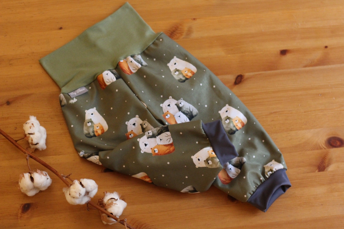 Kalhoty mají široký biobavlněný náplet v pase, který netlačí a krásně drží. Spodní lemy jsou z pružného softshellu pro snadné oblékání.