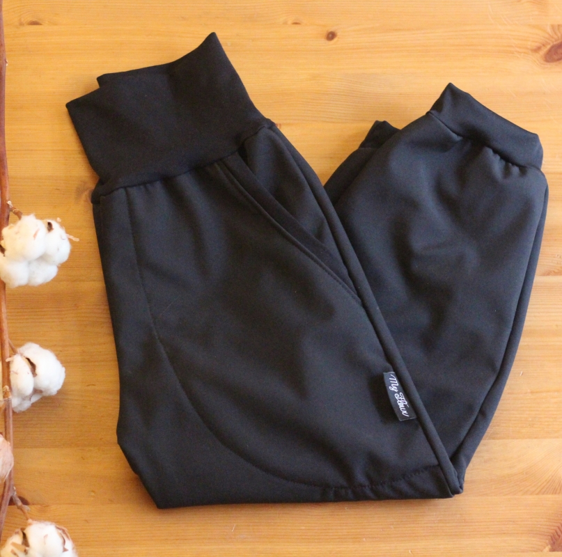 Tepláčky jsou ušité z funkčního nepromokavého materiálu, jehož vnitřní stranu tvoří měkoučkým fleese... Díky nápletům v pase i u nohavic rostou s dětmi:) Mají snížený sed, aby se pohodlně vešla i plínka. Vysoký pas je také velice praktický, zakryje zádíčka, když dítě sedí na bobečku. Díky nápletům vydrží více sezón. Spodní lemy jsou ušité z tenkého softshellu a jsou také nepromokavé.